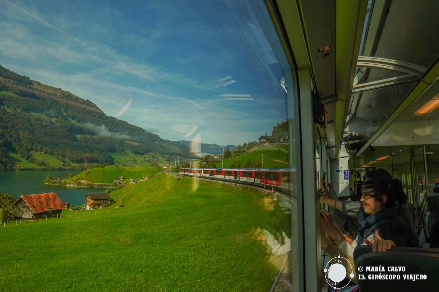 También me pongo en la piel de los demás pasajeros, habitantes de la región de Lucerna que tienen que coger el Luzern-Interlaken Express para ir a trabajar o para hacer una excursión. Y de tanto viajar en él quizás no se den cuenta del privilegio de ver estos paisajes a diario.