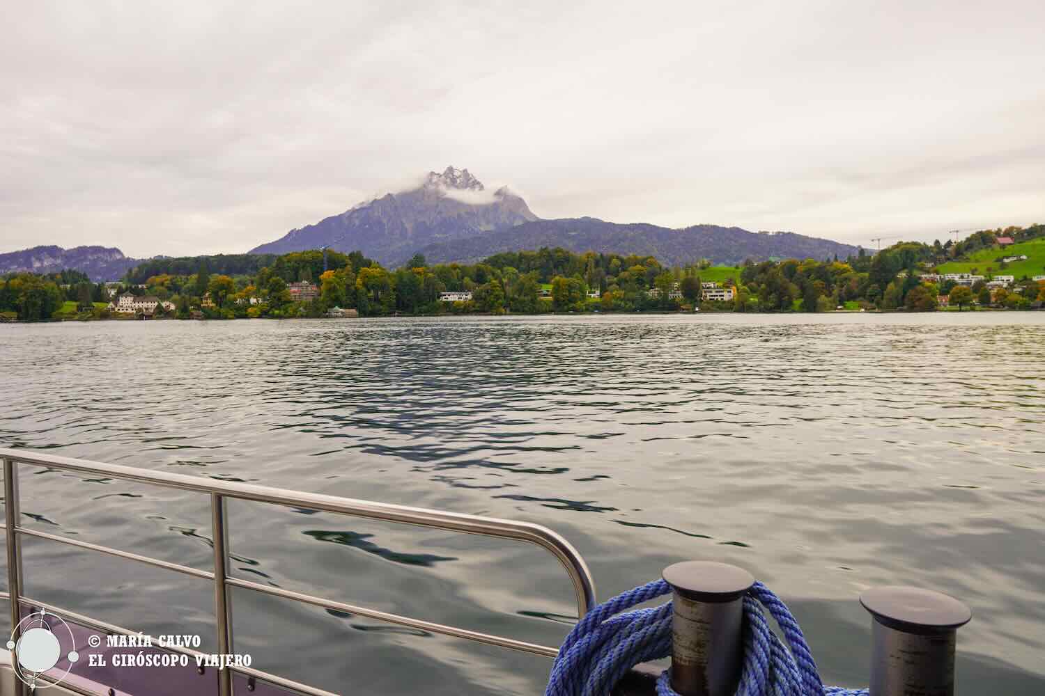 Cuando el tren arranca, queda atrás la ciudad a la que regresaremos al final del día, una de las más visitadas de Suiza. Lucerna que, con su Puente de la Capilla sobre el río Reuss y su Torre del Agua, se ha convertido en uno de los símbolos del país. La imagen que muchos turistas ven en los folletos y publicidades de Suiza. Desde la misma estación de Lucerna, comenzamos a contar lagos y montañas. Primero el Lago de los Cuatro Cantones, el que tienen la suerte de compartir varios habitantes de la Suiza central. Y el más emblemático monte de Lucerna: el Pilatus que, si no se esconde tras la niebla, siempre mira hacia la ciudad.