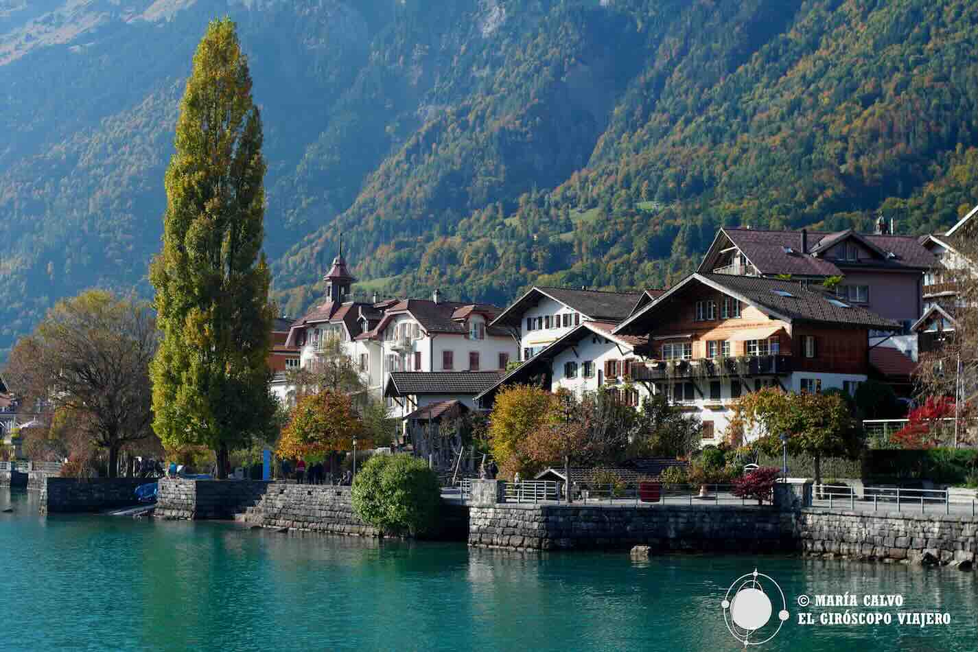 Brienz se ve desde el tren, un pequeño pueblo entre montañas y un gran lago que tiene el mismo nombre. Parece una postal: aguas color esmeralda, chalets de madera por las laderas y picos nevados. Los colores del otoño le dan otras tonalidades al conjunto. Parece un lugar idílico, lejos de todo, donde el tiempo parece haberse parado. Sólo el tren circula por las vías en un espacio que parece robado a las montañas. Definitivamente, pasaremos la tarde explorándolo.