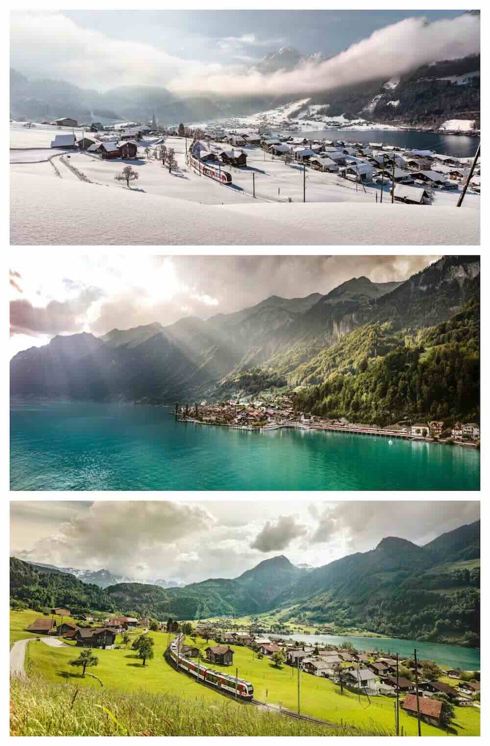 Panorámicas del invierno, la primavera y el verano en el tren Luzern-Interlaken Express