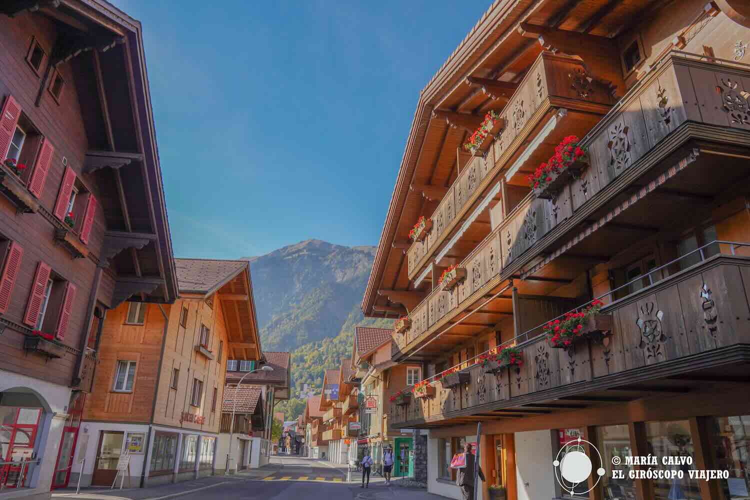 La luz radiante de esta tarde otoñal resalta las aguas azul turquesa del lago de Brienz, que vemos desde el tren. Algunos viajeros corren al muelle para coger un barco turístico hasta Interlaken. Optamos por quedarnos en el pueblo y pasear por la calle Brunngasse, reconocida como la más bella de Europa. Para después perdernos por las callejuelas de magníficos chalets de madera con vistas a la montaña.